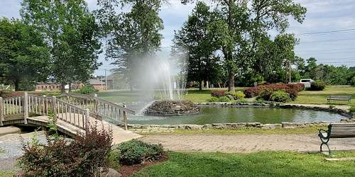Historic fort adjacent to bridge and 420-foot-tall observatory overlooking Penobscot River Valley